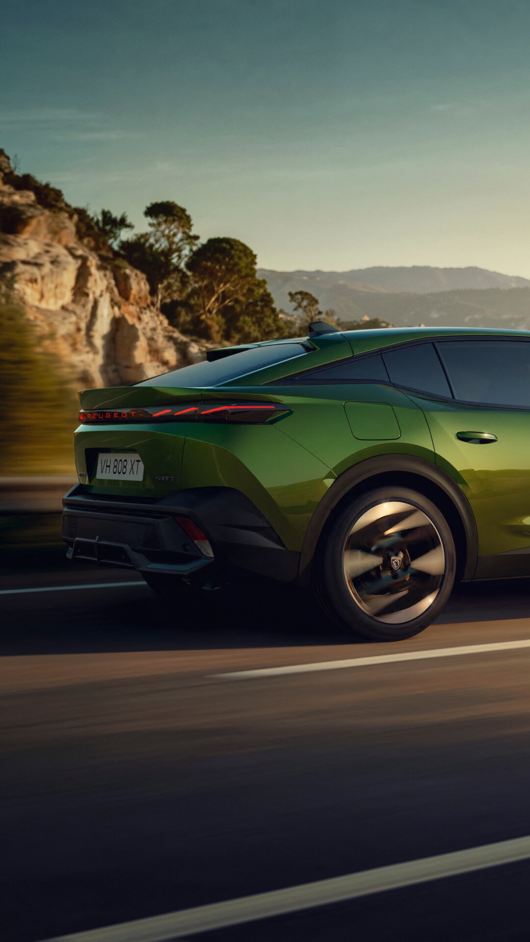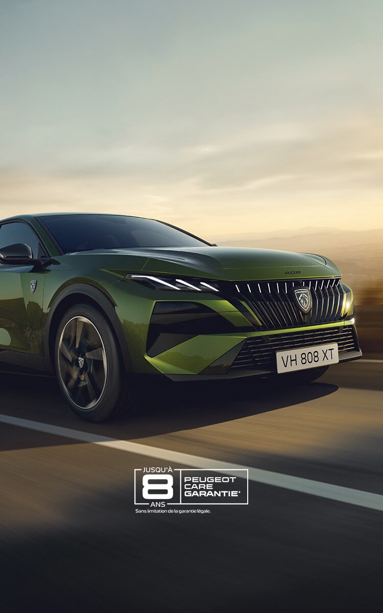 Avec sa silhouette dynamique, ses griffes LED incisives, sa signature arrière rouge PEUGEOT audacieuse et sa carrosserie "Vert Fascinant" éclatante, chaque détail affirme sans compromis sa présence unique.